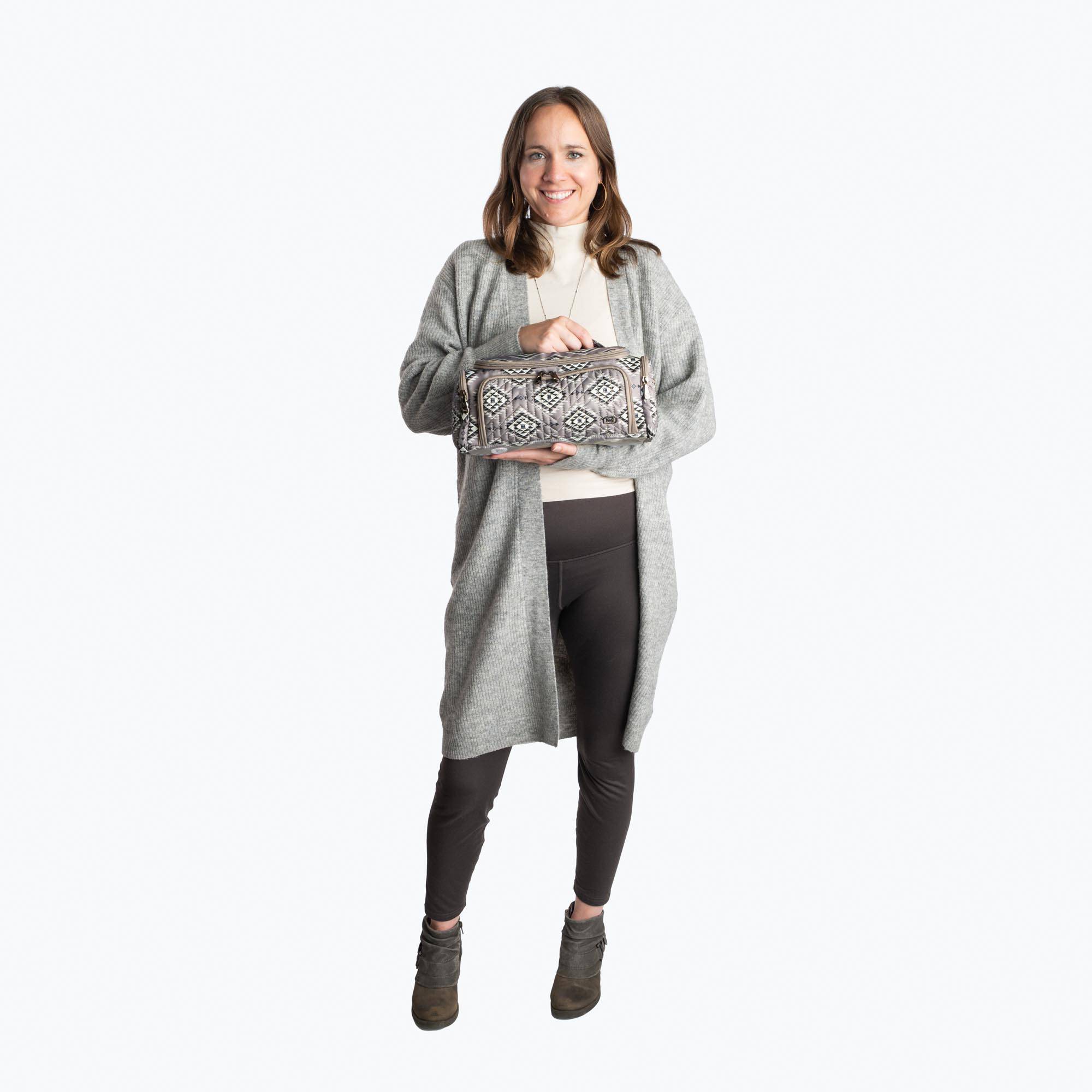 Say goodbye to chaotic toiletry bags and hello to your new travel BFF. The Trolley Cosmetic Case, a Lug and Mary DeAngelis collaboration is designed for the organized jetsetter, with multiple compartments, zippered pockets, and even an accordion foldout that keeps everything easily accessible. The trolley sleeve slides effortlessly onto your luggage handle, while the sturdy bottom feet and top handle offer versatile carrying options. Travel just got a whole lot more stylish (and organized!).